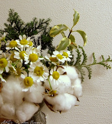 モフモフな綿にモミで12月のお花って組み合わせが増えて楽しくなっちゃいます。