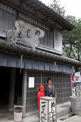 隣のご飯屋さんの前では 忍者とお侍さんがいたり、