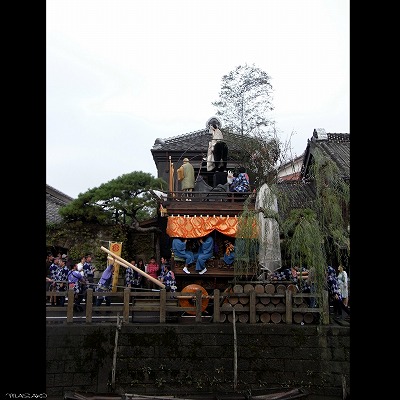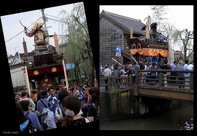 古い町並みと水路と山車。