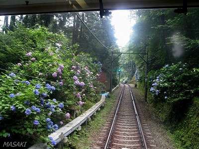 6月下旬~7月下旬までは「あじさい電車」と呼ばれるこの電車。
