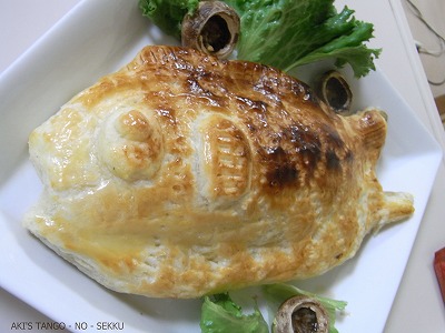 ジャガイモ・チーズクリーム・ホウレン草・シャケの だんだん重ねのパイ包み焼き。