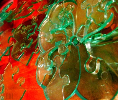 透明な上に何重にも重なっていく立体パズル。