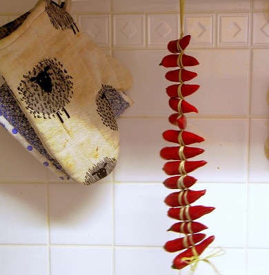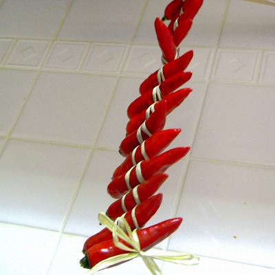 9月に高山の朝市で見た 吊り下げ型のオブジェ(?)風の乾燥唐辛子でした。
