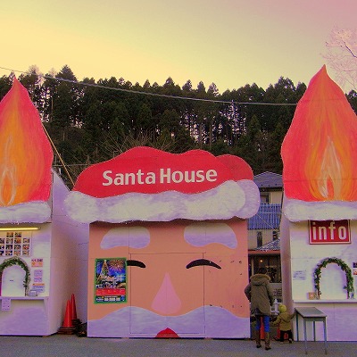 上の様なサンタハウスや、囲炉裏風にした店頭で鮎なども