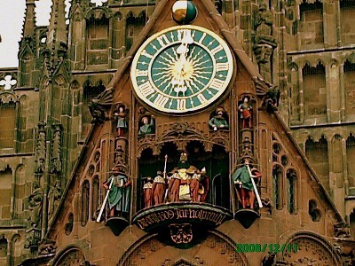 広場にあるフラウエン教会の正午に出てくるカラクリ人形達でした。
