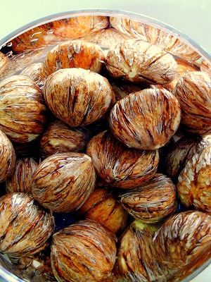低温で渋皮がカリカリになるまで素揚げして 塩を振るだけらしいです。