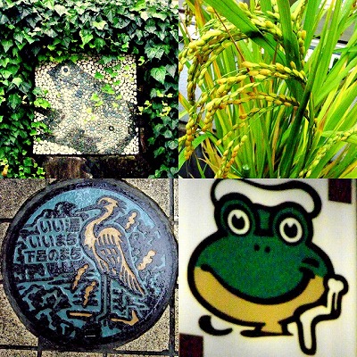 ゲロゲロ蛙でどうも街のキャラクターがカエルのようでございます。