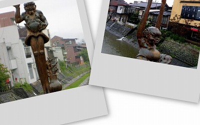 安川通りにつながる鍛冶橋にはこんな 足長君 手長君がおりました。