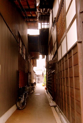 歴史的建築物群保存地域だそうで 黒光りしている木でできた