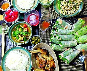 ↑右上の 美しいグリーンカレーのバジルや 生春巻きのお野菜は