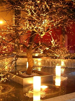 見事にフェイク梅が咲き誇る中