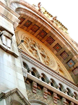 見上げるとアラビアタイルが埋め込まれてい、とても美しい教会でした。