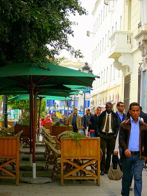 チュニジアはとにかく路上にカフェが多く、大通り中にテーブルが並んでます。前にも書いた様に 人間観察好き?