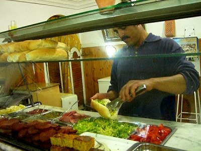チュニジアでは手前の様な四角いオムレツみたいな卵料理になります。