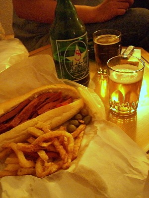 た~~~っぷりのフライドポテトとオリーブも入れてくれました。