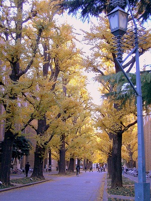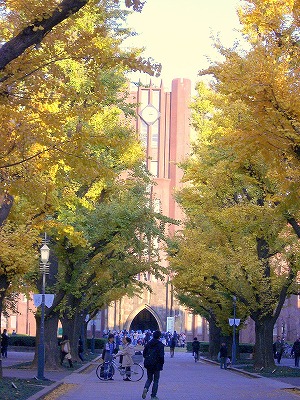 イチョウの向こうのが安田講堂です)