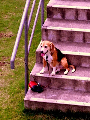 お外で待ってるビーグルに