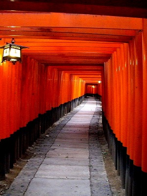 朝から怖いかな~・・・と実は思っていたのですが、平日にもかかわらず 境内も明るく、人も多かったので 思い切って有名な千本鳥居へ向かいます。