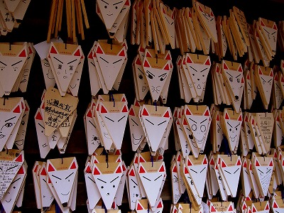 そもそもなぜきつねかと言われますと稲荷三神は食物の神、つまり御饌津(みけつ)神ですので、その「みけつ」がいつの間にか御狐(みけつね)、三狐(みきつね)に転じた説や、他に神使として特に田の神の使いにはきつねと言われ五穀豊穣の神のお稲荷さんに使えると言われます。