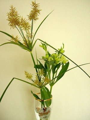 洗面所には右。道路脇に生えていた カヤツリ草を失敬して組ませてみました