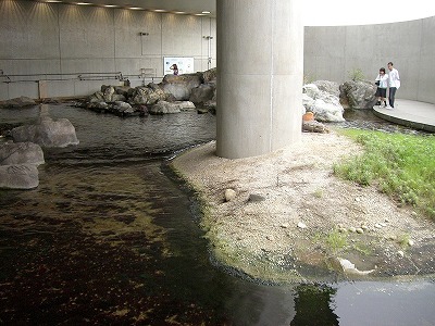 小川を渡って水族館は終わります。