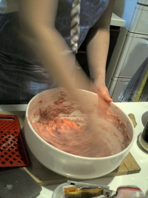 肉まんの餡も ちゃんとバラ肉からミンチに。