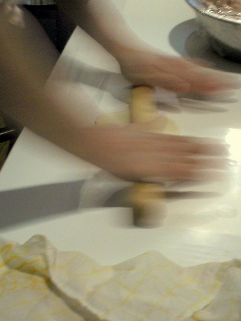 とんとん とんとん切ってって 皮の形に伸ばしてきます。