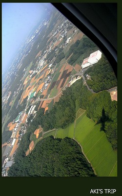 成田に近づく自分の飛行機の影がこんなにはっきりと見える距離まで