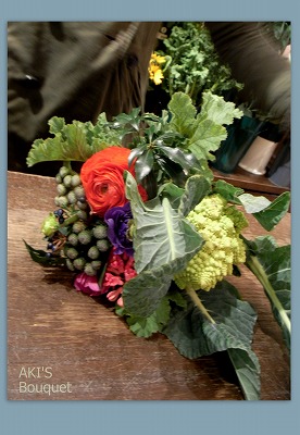 ご自分でフルーツや野菜をブーケに使われたりするお友達でしたので、